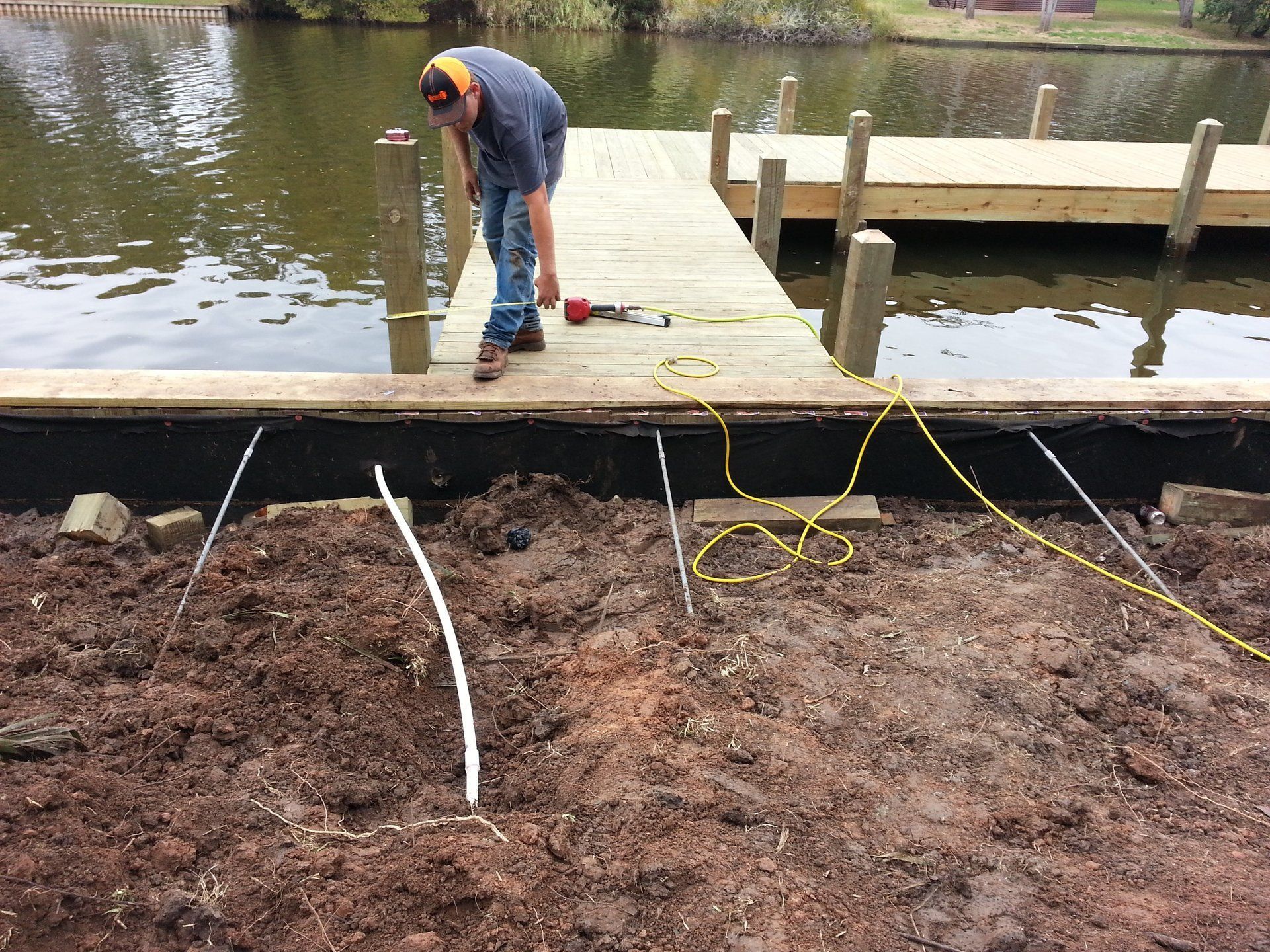 We'll come and build the sea wall by driving beams into the shoreline and creating a wall. We'll then use ShoreGuard vinyl products and backfill the wall. With our service, you'll have a high-quality yard that extends out to the shoreline.